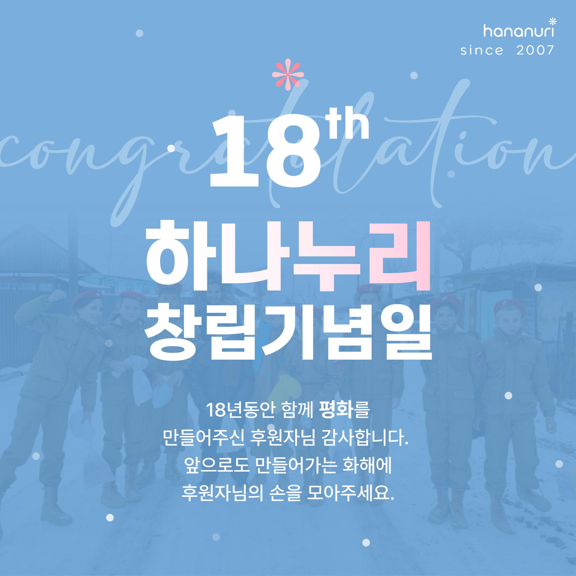 18년 동안 함께 평화를 만들어 주신 후원자님이 계셨기에 가능한 시간이었습니다.